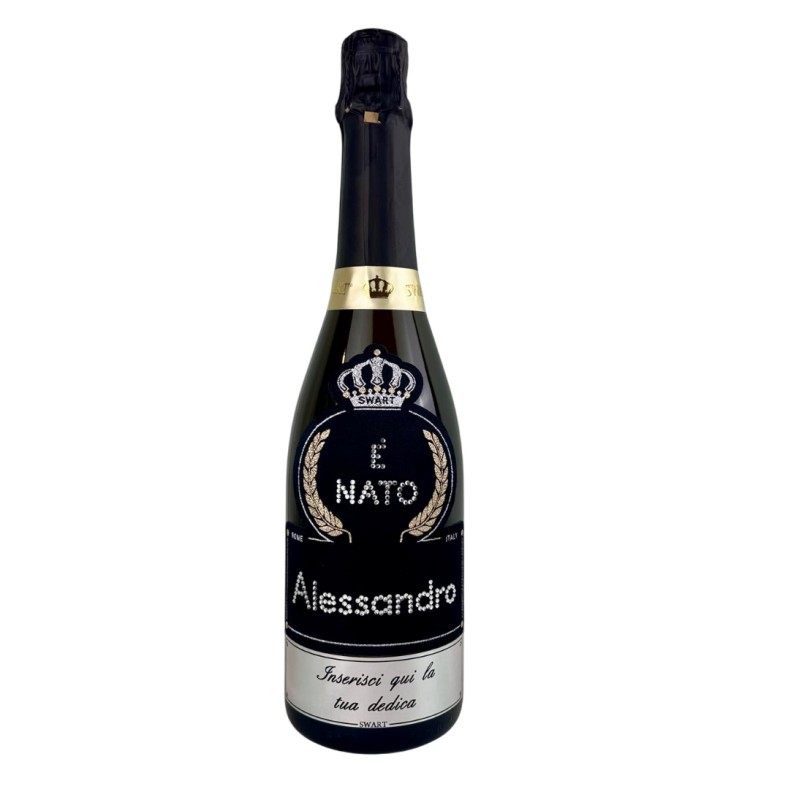 5/5 Imperiale Black 0,75L per Nascita con Nome e Dedica - Bottiglia con Cristalli BOTTIGLIA CAPODANNO 2023