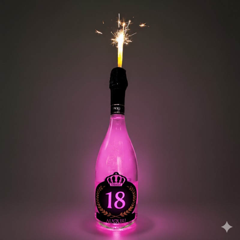 Bottiglia LUMINOSA personalizzata per Compleanno 18 anni 0,75L