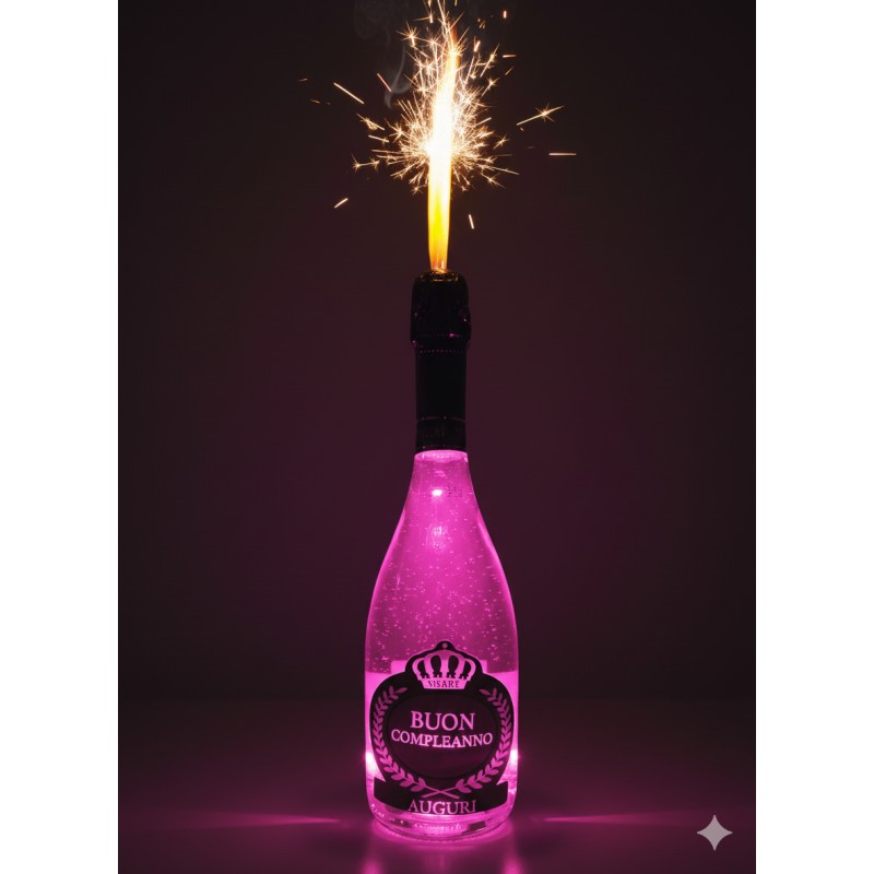 Bottiglia LUMINOSA personalizzata Buon Compleanno 0,75L