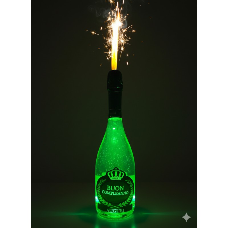 Bottiglia Luminosa Multicolor di Spumante Salieri Brut ed etichetta personalizzata Buon Compleanno